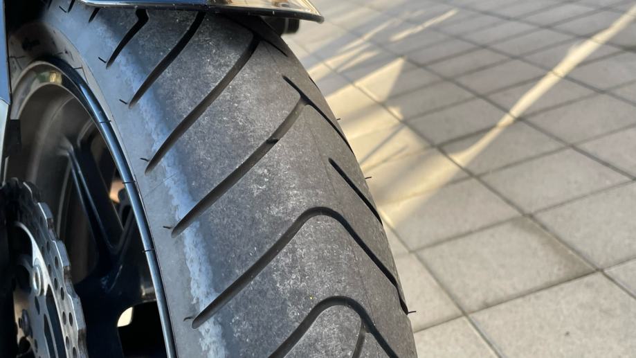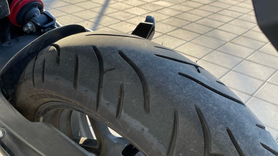 Gume na motoru su Bridgestone Battlax BT-023, stavljene pred 5000-5500 km, ali još uvijek su u dobrom stanju, vidljive na slikama.