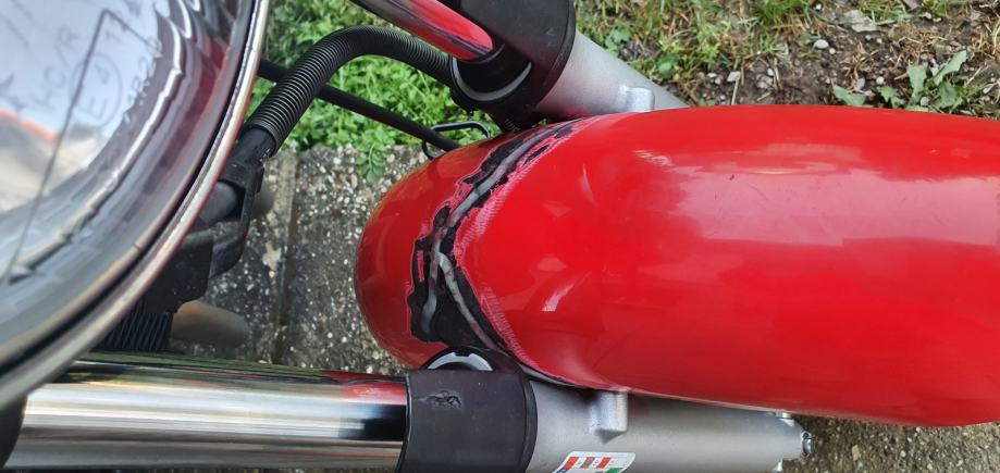 Prethodnoj vlasnici motor pao na bok te ima oštećenja koja su poslikana (tank i blatobran). Naravno kada sam kupio odmah provjera u servisu, most i vilica sve uredu (Viktor moto).