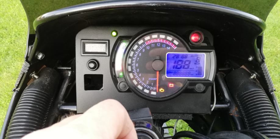 Od dodatne opreme ima xenon svjetla, prednji disk je njemački 320mm s adapterom za standardni KLE- kaliper, opleteno kočiono crijevo, Inox auspuh sa homologiranim topom, prednji kraj je poboljšan s progresivnim federima i adekvatnim uljem u vilicama, prerađeno sjedalo, prednju vizir s lamelicom. Dodatno ima kineski dashboard, koji radi odlično, čak mu ni kiša ne smeta (https://www.youtube.com/watch?v=uommX0ksGQ0).