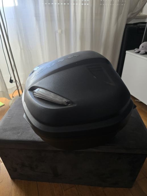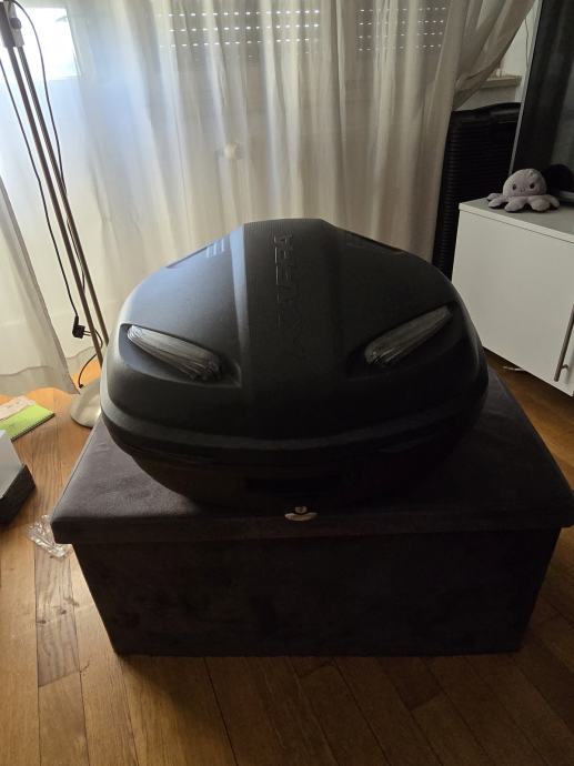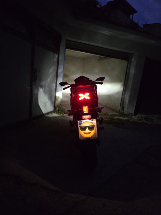 Akrapovič auspuh montiran, atestiran i upisan u prometnu. Uz motor naravno dajem i original, a ide i nosač kofera i veliki kofer (cca 40-50 litara po mojoj procjeni, nisam ga sam kupio).