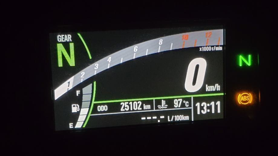 TFT ekran sa pokazivačima hrpe informacija, promjenjive svjetline i boje, mogućnost povezivanja sa mobitelom preko Bluetootha i kawasaki rideology aplikacije. LED svjetla kompletna, ABS prednji i zadnji.