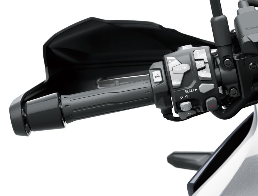 Povišeni vjetrobran podesiv, grijane ručke, štitnici ruku, Quickshiter, tempomat, LED "cornenring" svijetla, USB-C punjač