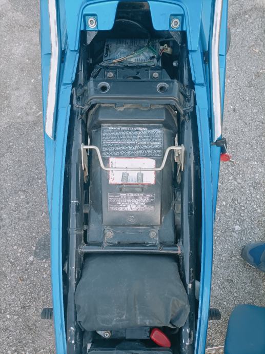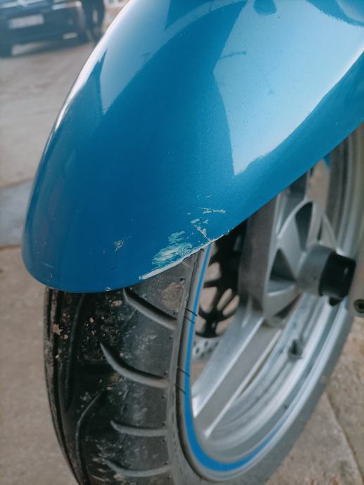 Od opreme tu su Givi kofer i centralna + bočna nogara. Plavo i crno sjedalo - nadoplata kod novog - dovoljno govori o vlasnicima da su oba ostala uz motor. Potrošnja je oko 3l, motor je agilan i po pitanju voznosti lagan, stabilan i udoban.
