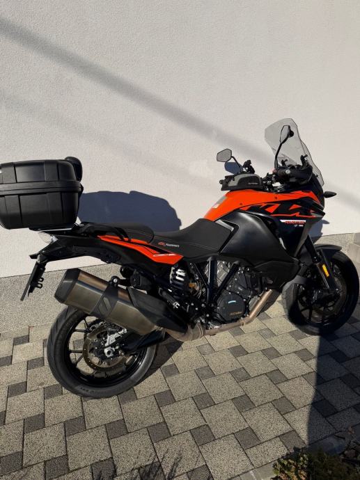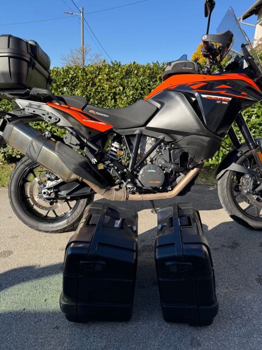 Na motor dodano cca 2000€ opreme, set od tri kofera givi, poviseni vjetrobran puig,prosirenje nogare,sjedal gelirana od “power parts” ktm orginal znatno udobnija, nosac mobitela, sve ide uz motor kao i orginalni dijelovi.