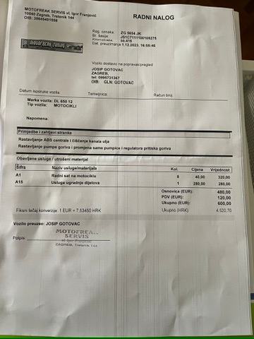 Kasnije je motor servisiran kod majstora Bruma (Zoran Petrac) iz Buševca, mehaničara koji isključivo servisira Vstrom-ove i kod kojeg preporučujem da nastavite održavati motor jer je u vrhunski majstor i u potpunosti upoznat s ovim Stromom.