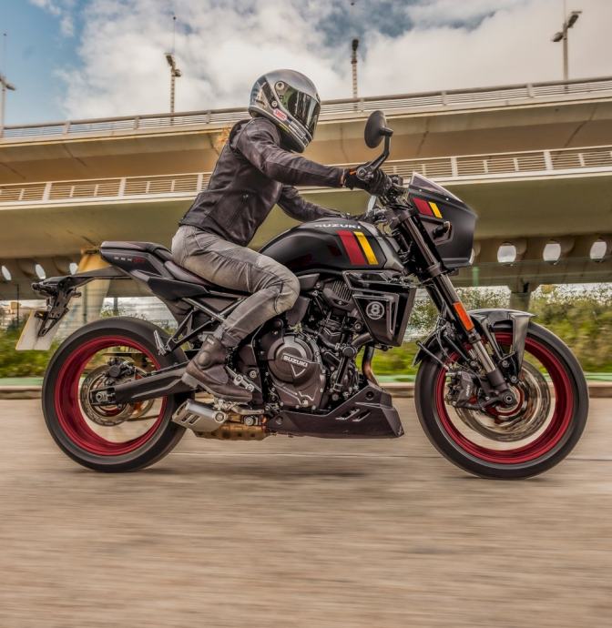 Iako ima retro karoseriju, performanse sljedeće generacije dolaze iz Suzukijevog nagrađivanog 776cc DOHC paralel twin motora s radilicom od 270°, koji je široko hvaljen zbog obilja okretnog momenta i pogona na niske brzine.
