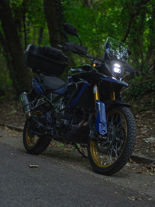 Modovi voznje + mogucnost iskljucenja ABS, TC, Quickshifter, 21" prednji kotac, zbicane felge, stitnici za ruke, skid plate..