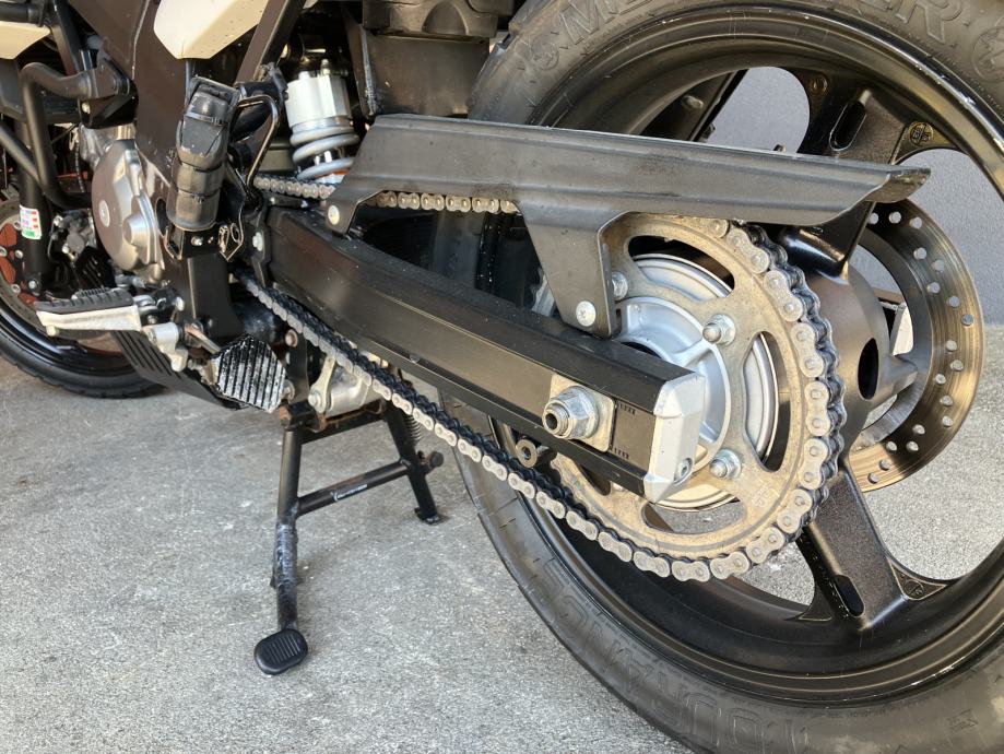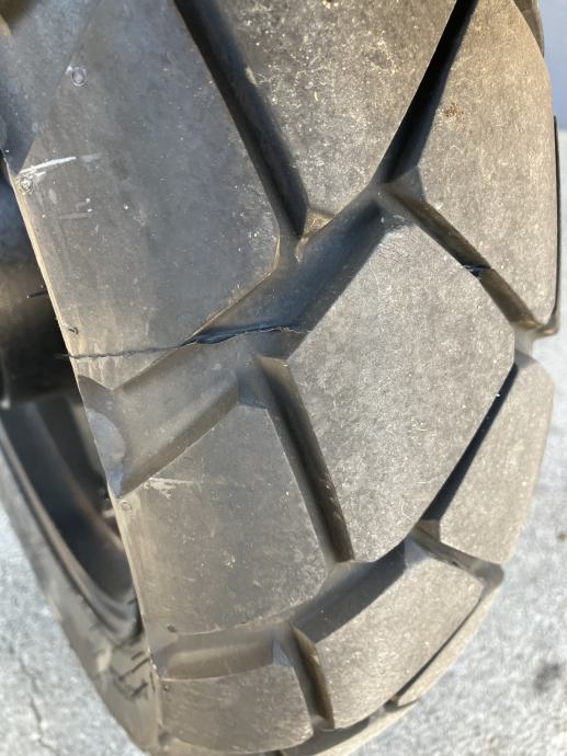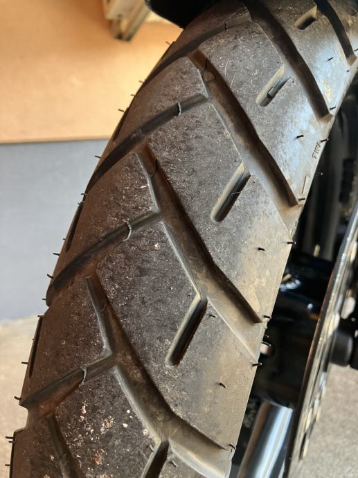 Kočnice su dobre. Gume su Metzler Tourance kupljene nove za ovu sezonu i svaka ima u ovom trenutku malo iznad pet tisuća kilometara i ići će one još duplo (vidi slike). Nove žarulje prednjih farova su stavljene ove godine. Stavio novi akumulator novi prošle godine i pali uvjerljivo svaki puta. Lanac je u dobrom stanju, redovito čišćen i podmazivan, kao i zupčanici koji su svi prilikom generalke promijenjeni. Kako ja znam, a bogami sam ga se nagledao, motor nema trunčice hrđe na sebi. Zadnji i prednji ovjes provjeren i u dobrom je stanju. Provjerio ove godine i ležajeve u kotačima, isto su u dobrom stanju. (Ako sam što zaboravio naglasiti, samo zovite pa kažem ili provjerim naknadno).