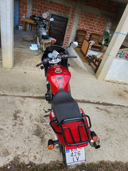Od ostecenja ima skroz lagane ogrebotine po rezervaru i maska je varena. Svejedno izgleda super a pofarba se za jeftino.