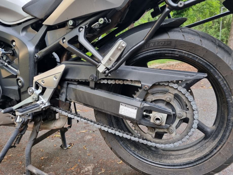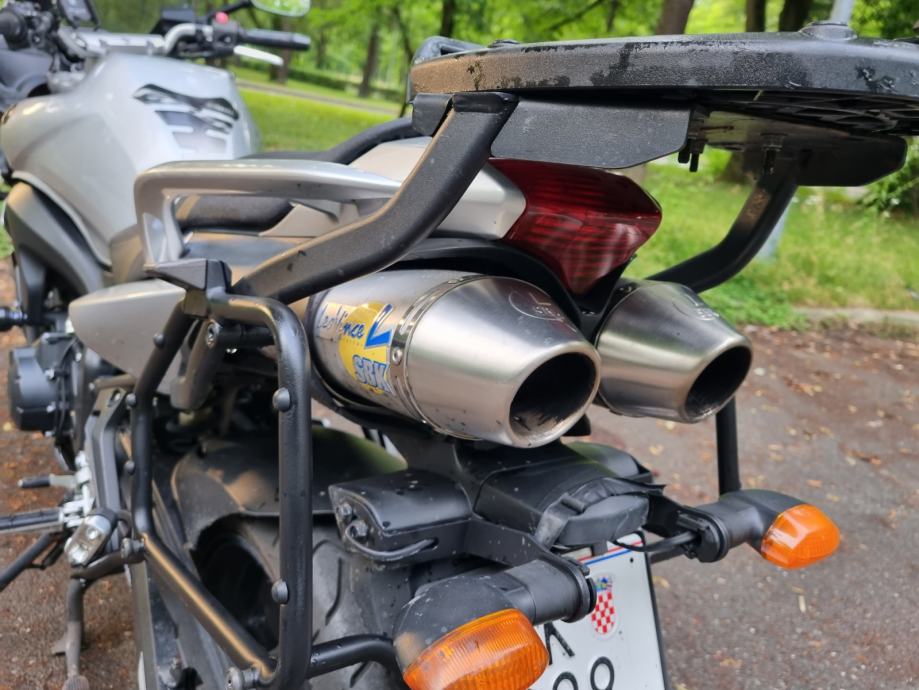Stavljen je auspuh Leo Vince koji je homologiran i atestiran (upisano je u knjižicu vozila). Ima zadnji veliki kofer u koji stanu dvije kacige i dva bočna kofera koji su kao novi i nosač za mobitel sa punjačem. Stavio sam gume Dunlop Sportmax Roadsmart 3 koje su bile i originalno na motoru. Zamijenjena je sajla za kvačilo (stavljena je N verzija koja je bolja od originala - lakse se stisce kvacilo), nove kočione pločice i nove svijećice. Ako se vozite kao ja idućih 5 godina nemate nikakvih ulaganja osim goriva i redovnog servisa.