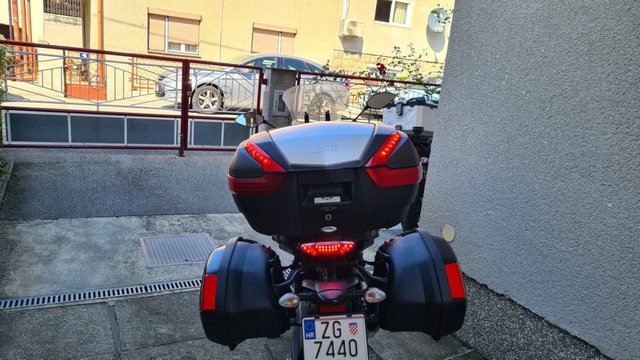 povišeni vizir, udobno sjedalo grijano, štitnici motora proširena nogara, utezi volana tri kofera GIVI centralni sa ugrađenim štop svijetlom bočni sa sustavom brzog skidanja, prsten za givi tank torbu.