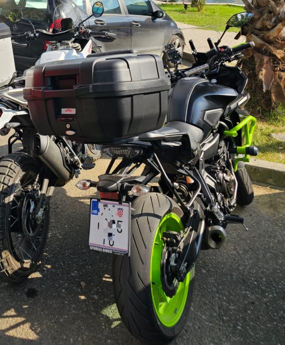 Oprema je GT. Uz srednji kofer (Monokey 52L, na slici. Stanu 2 full kacige), dolaze i 2 originalna bočna Yamaha kofera (nisu na slikama jer sam ih samo jednom stavio)