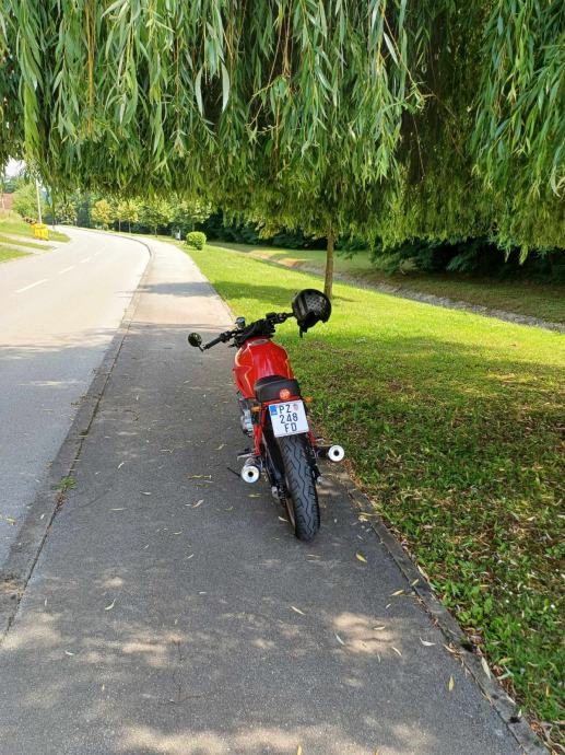 Ulje, filteri, svječice, ulje u kočnicama, novi diskovi i pločice, lanac lančanici, pikse u kotačima, reparirana vilica, pjeskaren rezervar i stavljena zaštitna smola, preštelani ventili, novi akumulator i nove gume.
