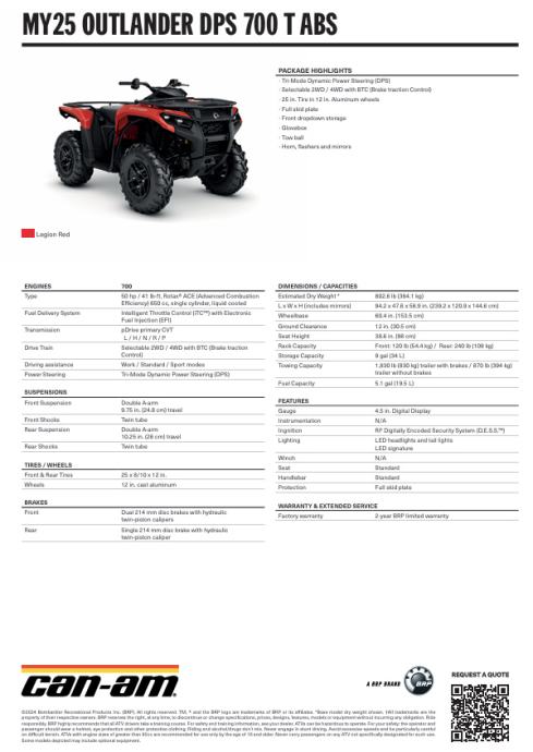 BRP Outlander DPS T 700 650 cm3 2025., 2024 god.