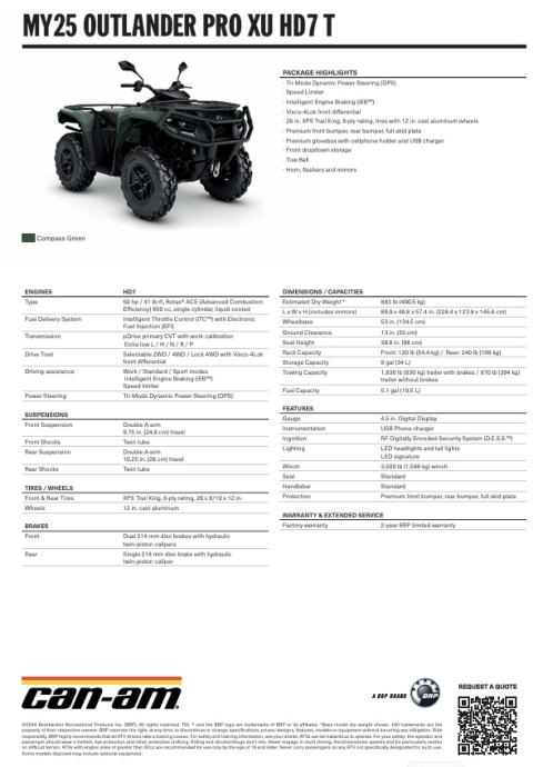BRP Outlander PRO XU T HD7 650 cm3 2025., 2024 god.