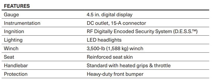 ∙ 26 in. ITP Terracross tires with 14 in. aluminum wheels