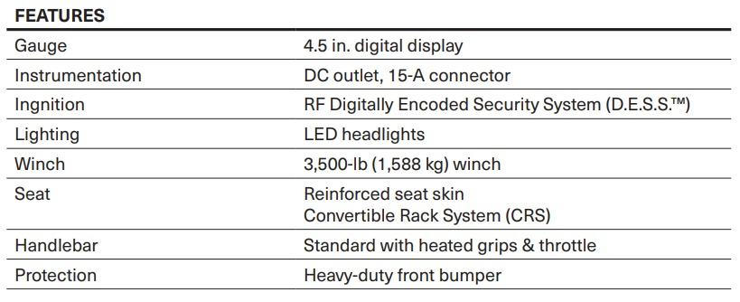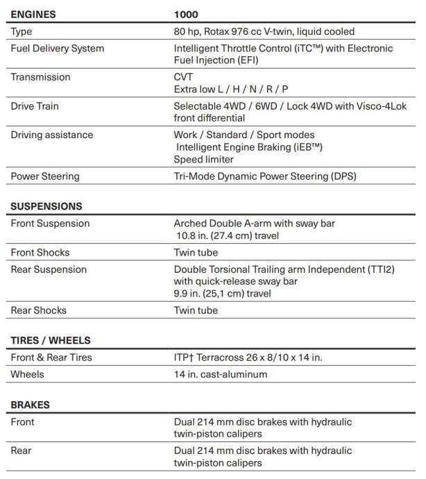 ∙ 26 in. ITP Terracross tires with 14 in. aluminum wheels