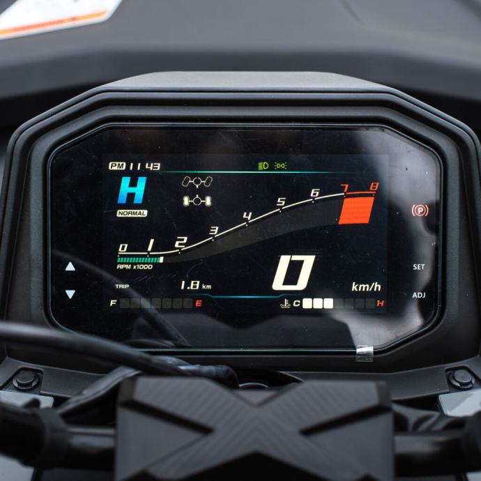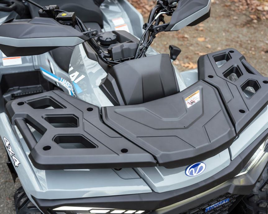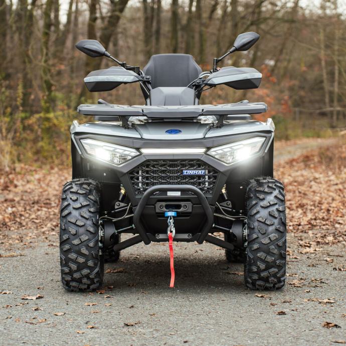 Oprema: Električno vitlo snage 3000 lb s najlonskim užetom, EPS električni servo volan, homologirani uređaj za vuču, 14″ aluminijski dizajnerski naplatci, originalne 26″ Bulldog gume, prednji i stražnji nosači od kompozitnog materijala, zaštita za ručice i poluge, potpuno LED osvjetljenje, veliki 7″ TFT zaslon