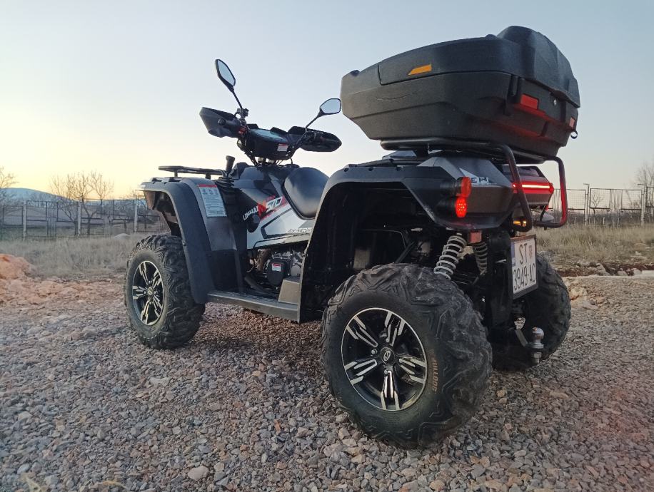Linhai kao nov, bez ogrebotine, redovno održavan i servisiran. Nema nikakvih dodatnih ulaganja. Model je s full opremom-servo volan, alu felge, kuka, vitlo 12V, 2x4, 4x4, blokada diferencijala.
