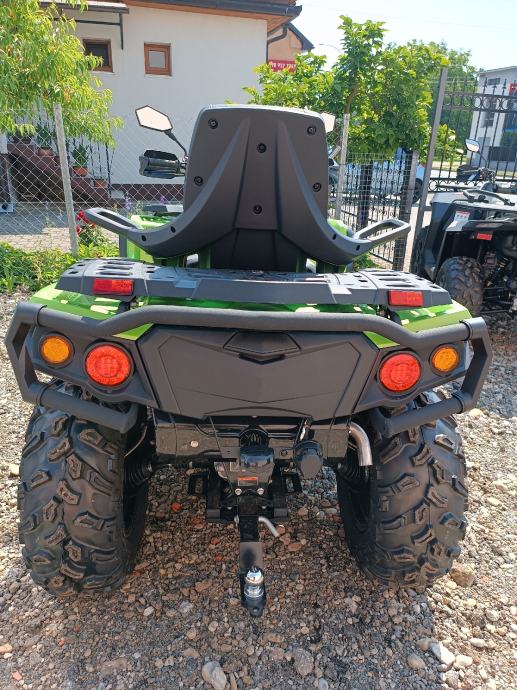 U cijenu je uključeno sljedeće: EPS servo volan (3 moda podesavanja), LED svjetla naprijed i pozadi, prednji ROLL BAR, zadnji ROLL BAR, plinski amortizeri sa mogucnosću podešavanja,14“ ALU felge, 26“ pojačane gume, vitlo 3500lbs (1580kg), kuka za vuču sa električnim priključkom, štitnici za ruke na volanu i bočni blatobrani, ergonomski naslon i držači za suputnika
