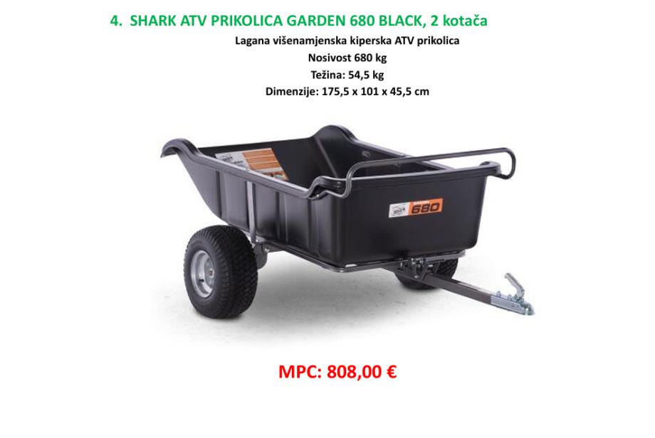 4. SHARK ATV PRIKOLICA GARDEN 680 BLACK, 2 kotača
