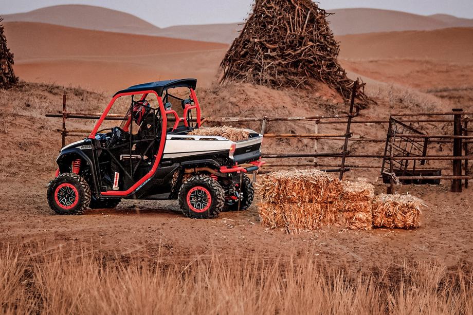 Električno vitlo 4500 lbs, električni servo upravljač, oprema za vuču, podesivi volan, anatomski oblikovana sjedala s naslonom za glavu, pojasevi u tri točke, digitalna instrument ploča TFT, prednji zaštitni okvir, stražnji zaštitni okvir, fiksna bočna vrata, fiksni krov, preklopno tijelo, aluminijski kotači od 14 "sa sustavom Beadlock, Smart Commanding System (TBOX), 10,4" zaslon osjetljiv na dodir, pola plexi vjetrobrana.
