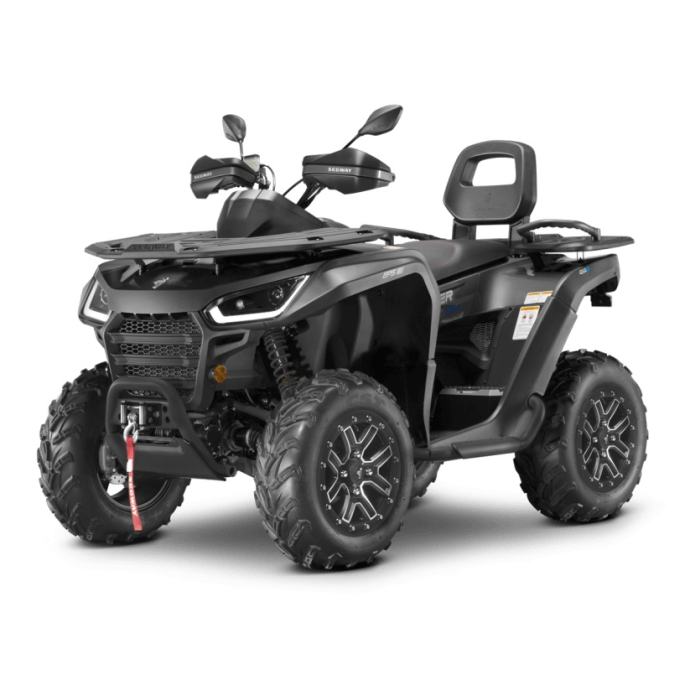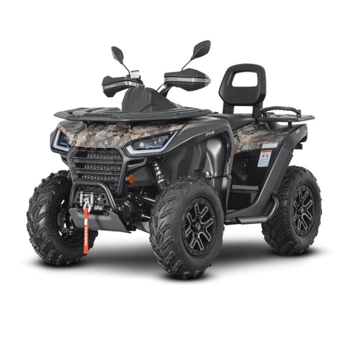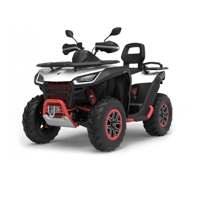 Električni servo upravljač s tri načina rada, električno vitlo, sjedalo sa naslonom, oprema za vuču, kompozitni nosači sprijeda i straga, digitalni višenamjenski zaslon, Full-LED osvjetljenje, prednji zaštitni okvir, stražnji zaštitni okvir, bočni zaštitni okviri, 14 “aluminij kotači sa sustavom Beadlock, gume od 26 “, potpuno podesivi ovjes s progresivno zavojnim oprugama, zaštitne navlake, Smart Commanding System (SCS) + mobilna aplikacija Smart-Moving App