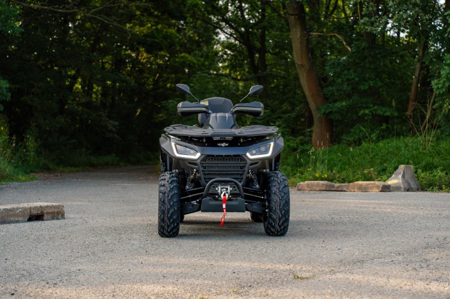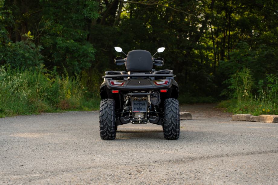 Uslužni / rekreacijski ATV s produženim međuosovinskim razmakom, T3b, sustav ABS (Anti-lock Brake System), električni servo upravljač EPS, tekućinom hlađeni jedan cilindar 570 cm3 EFI, automatski mjenjač P / R / N / L / H, kočenje motorom, 4×4 pogon s prednjim zaključanim diferencijalom, dvostruki A-krakovi sprijeda, dvostruki A-krakovi sa stabilizatorom straga, potpuno podesivi plinsko-tekućinski Piggyback amortizeri i progresivne opruge, prednji/stražnji/bočni zaštitni okviri, kuka za prikolicu, električno vitlo 2500 lbs, kompozitni nosači sprijeda i straga, Full-LED osvjetljenje, produženo sjedalo s naslonom, 12V/USB utičnica, 14″ aluminijski Beadlock kotači, 26″ gume, štitnici upravljača, Smart Commanding System (SCS) + mobilne aplikacije Smart-Moving App