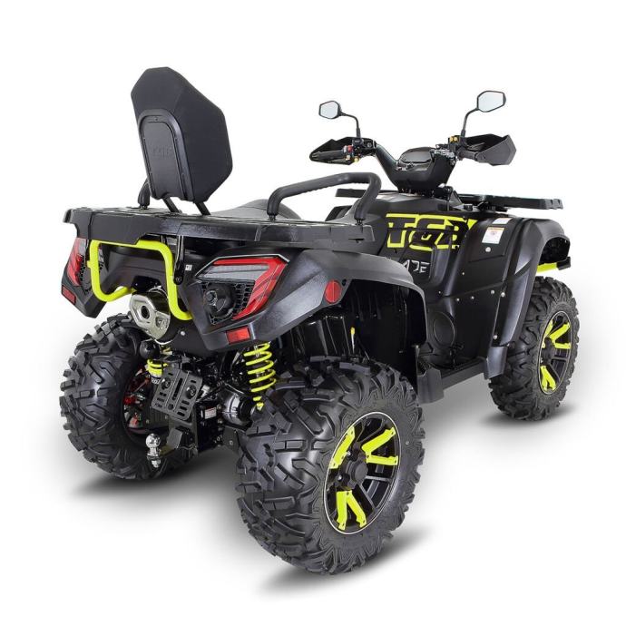 Modernizirani quad bike blade 1000 LTX MAX nudi još bolju funkcionalnost i još atraktivniji dizajn. Novost dolazi s potpuno novim velikim TFT zaslonom u boji s dnevnim i noćnim načinom rada, koji sada ima i Bluetooth vezu s mobilnim telefonom. Nova stražnja LED svjetla s funkcijom dinamičkog bljeskanja privlače pažnju. Performanse ovog izvrsnog vozila na četiri kotača osigurava najjači TGB motor ikada, a naravno nedostaje sve ono što Blade 1000 LTX čini toliko popularnom: pogon 2×4/4×4 s blokadom diferencijala, pojačani automatski mjenjač s japanskim komponentama, snaga upravljač s promjenjivim učinkom, produžena šasija s dovoljno mjesta za dvoje i uređaj za vuču. Dobar izgled novog modela naglašen je LED-Matrix prednjim svjetlima i atraktivnim kotačima sa segmentima označenim bojama.