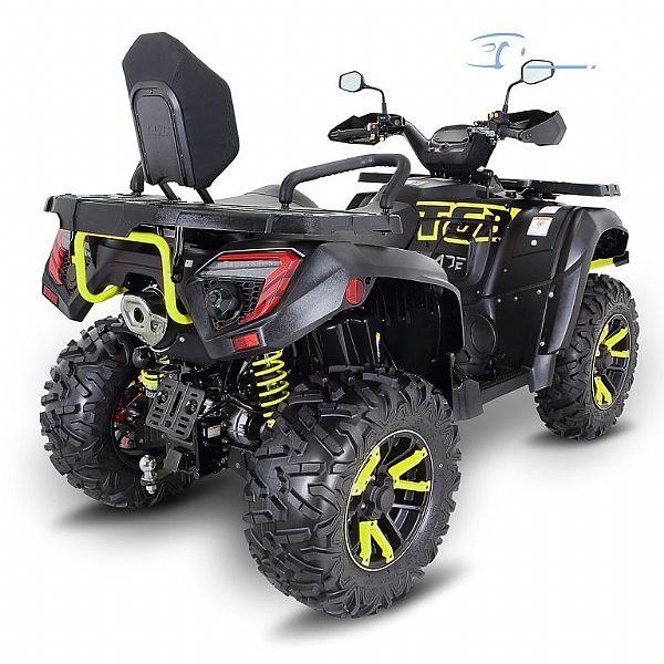 Stražnji ovjes Dvostruki A-ram AT 26 × 11 – 14, 6 PLY Međuosovinski razmak (mm) 1460 Duljina/širina/visina (mm) 2340× 1255× 1340 Kapacitet spremnika goriva 23L Električni izlazni priključak 2 DC 12V 10A 120W Dostupna homologacija T3, L7e 2 sjedala .