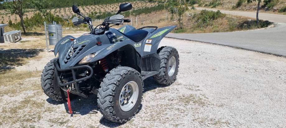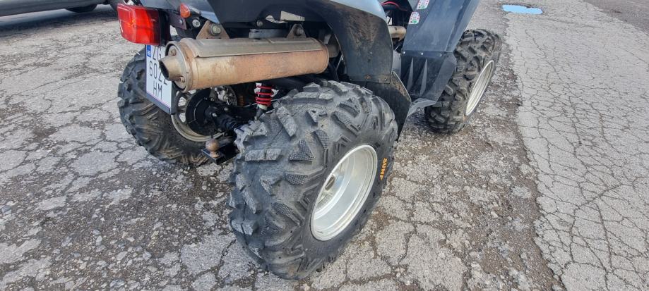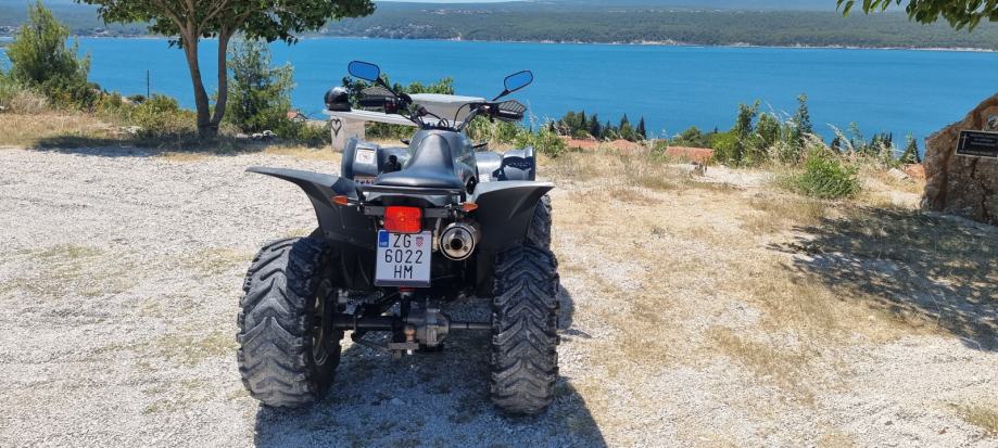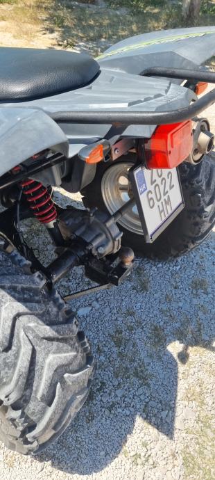 Pogon 4X4 on-demand, vitlo, kuka, nove gume Sun F. Registriran do 09/2026. Moguc prijevoz quada novom vlasniku. Novi yuasa akumulator. Nove LED Osram zarulje ultra white offroad.