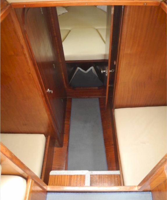 Technical equipment: 230 Volt shore power connection, pressurized water system, battery charger, solar panel 250 W, electric anchor with 30 m chain, spare anchor.