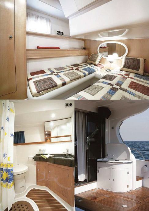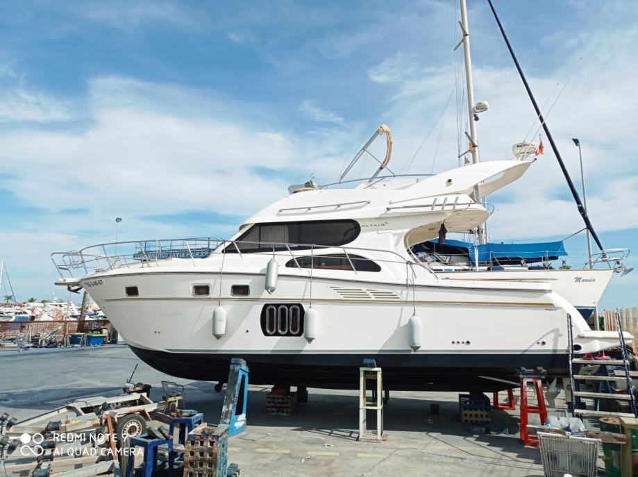 ALTAIR 42 is a fully equipped motor yacht, it has 3 cabins, a comfortable salon with a dining room and kitchen, a toilet with a shower, a spacious cockpit with a large table and a comfortable sunbathing area.