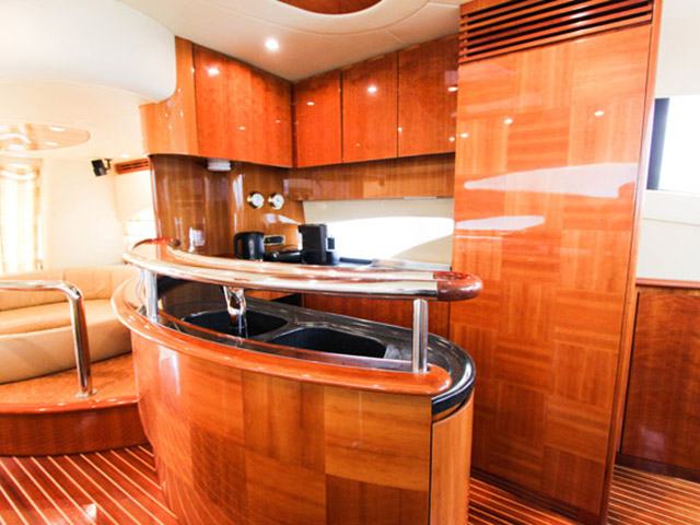 EQUIPMENT: bathroom, kitchenarea, salon areawithLCD TV for indoorrelaxingandentertainglargeflybridgeanddeckareafor outdoorenjoyment, jet tender, water skis, water tube, icemachine, laundrymachine.