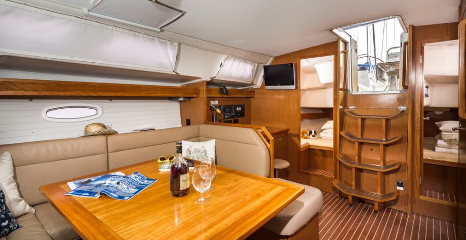 The Bavaria 47 Cruiser is an excellent choice for demanding customers. The cockpit is both spacious and functional. A folding table and a twin steering wheel system offer easier access to a gangway. A full batten mainsail and a roll genoa improve yachts sailing performance. During any weather conditions, sprayhood and bimini will protect your crew from the sun, wind and the rain. It has generously appointed interior with two heads, a full-sized refrigerator with freezer, and surprisingly handy storage compartments. The salon and cabins offer excess light and great air circulation. Plenty of room and storage, with wide beds characterize three double bed cabins. A bunk bed cabin is ideal for children, singles or as additional storage space. The kitchen is fully equipped with a gas stove and oven, electric fridge and basic cooking utensils. With proven performance, you'll have an excellent charter experience with this yacht.