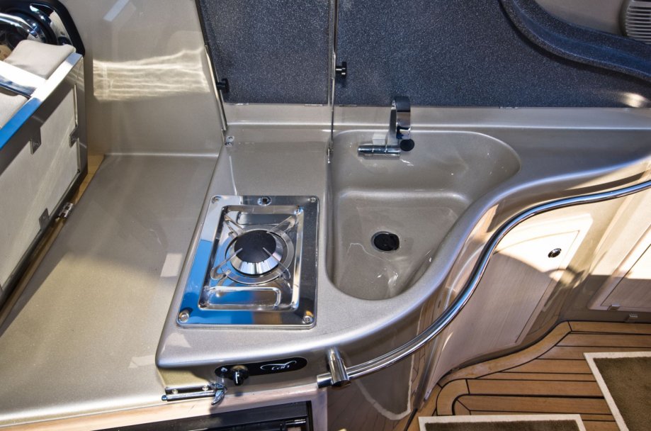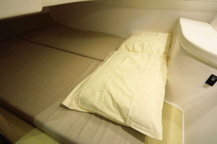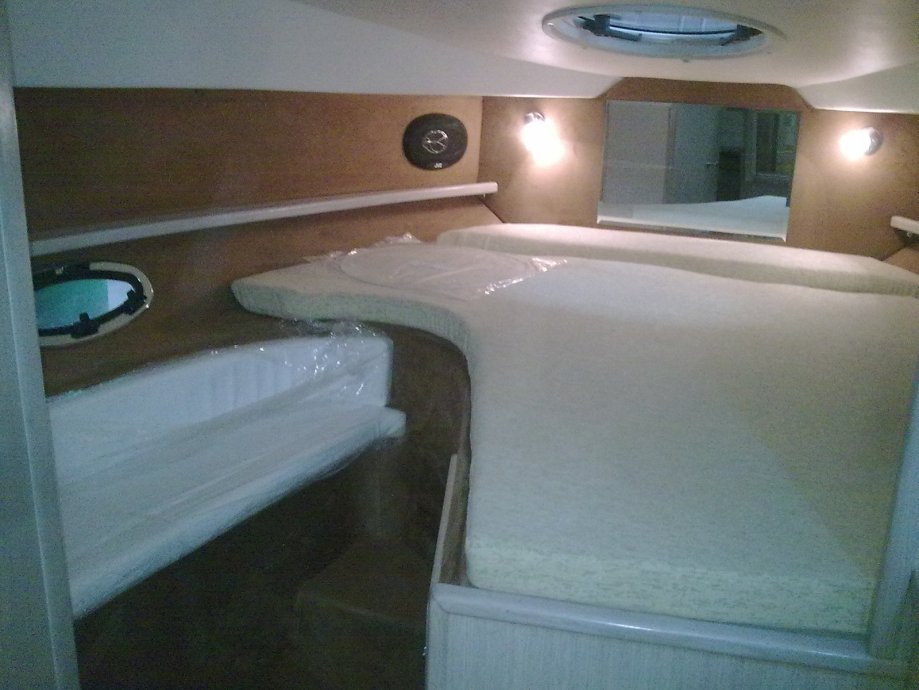 2 kabine, salon, kupaonica, tuš na krmi, kuhalo,hladnjak 80 litara, radio, TV, VHF, gps plotter, priključak za struju, ljestve za kupanje,stol u kokpitu podesiv po visini, električno sidreno vitlo,hidraulični flapsovi i ostala bogata oprema.