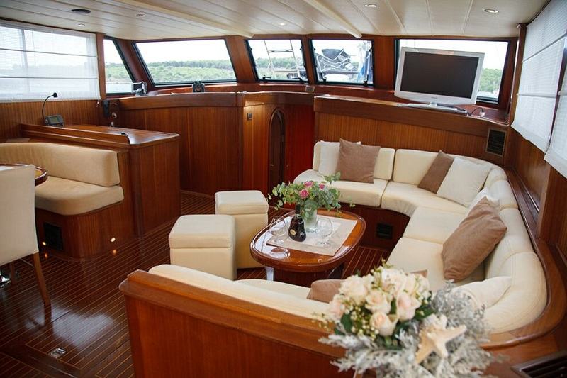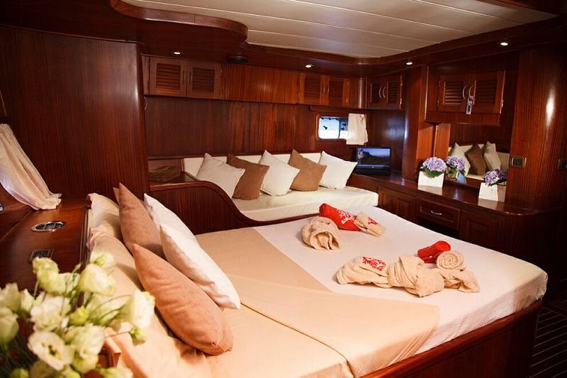 Guest cabins: 1 master cabin (200x140 cm), 2 double bed cabins (200x140 cm), 1 twin bed cabin (190x70 and 200x80 cm) with extra pullman bed (190x70 cm). Boat rental prices include: Accommodation on the yacht, 4 crew members, wages and food for the crew, Croatian VAT, fuel for main engines up to 3 hours cruising per day, fuel for generator use, complete linen and towels, yacht insurance, service on board, sojourn taxes, yacht cleaning, use of leisure equipment on board, WiFi. Leisure equipment: two jet skis, 2 hard inflatable kayaks, donut, snorkeling equipment, wakeboard.