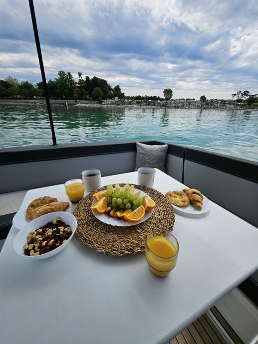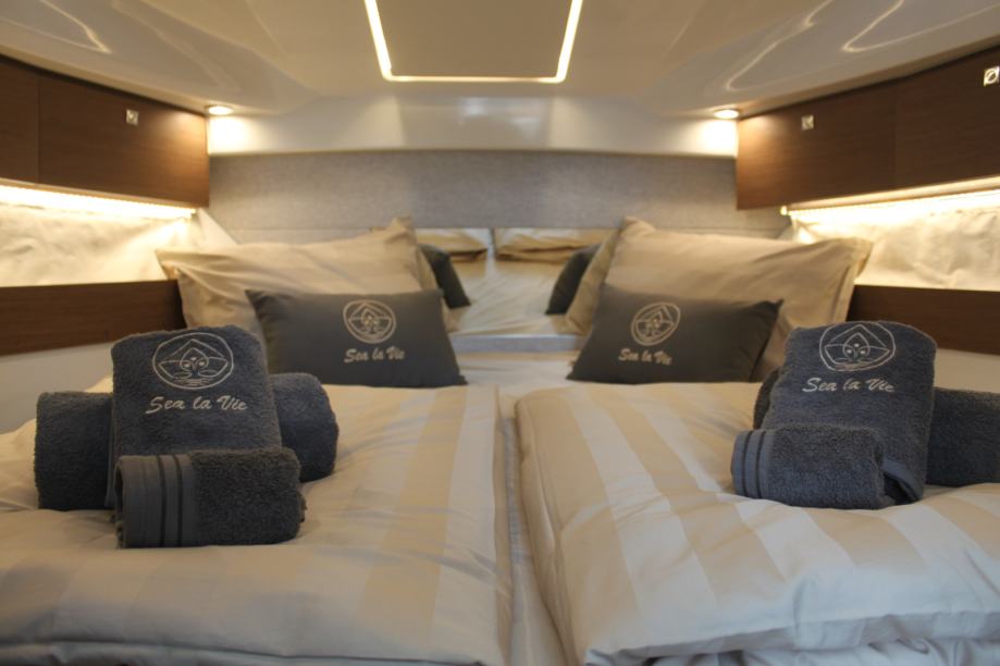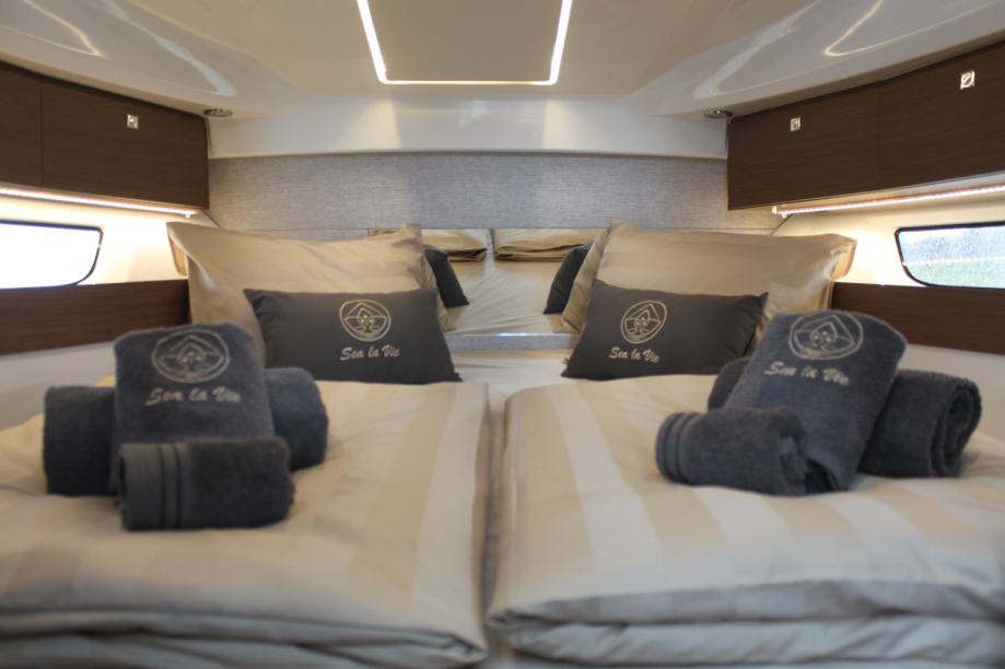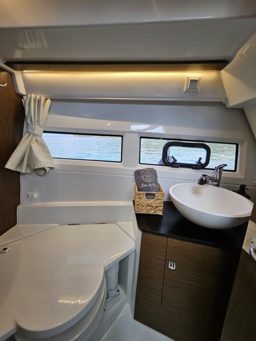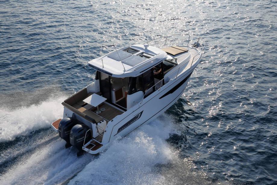 Iznamljuje se motorni brod Jeanneau Merry Fisher 895, 2022. g. 9m dužine, 2 kabine, salon, električni wc/tuš sa toplom vodom, potpuno opremljen za višednevni najam. 2 vanjska motora Yamaha 200 PS, voda 160l, crni tank 80, rezervari goriva 600l. 2 odvojene kabine + salon sa ležajem za 1 osobu (max 5 ležaja), bojler tople vode 220V, klima, webasto grijanje, navigacija, 2x TV (salon i pramčana kabina), podvodna led svijetla, opremljena kuhinja sa 2 plinska gorionika, ledomat, caffe aparat, frižider 60l sa zamrivačem, tikovina u kokpitu, električni vinč, vanjski tuš, ozvučenje (salon+krma), stol za ručavanje u salonu i krmi, sunčalište na pramcu i krmi, inverter struje, priključak 220V, bow thruster (pramčani propeler), električni flapsovi, solarni paneli...Cijena tjednog najma (subota -subota) 2500-4000 EUR....Mogučnost i dnevnog najma sa ili bez skipera.