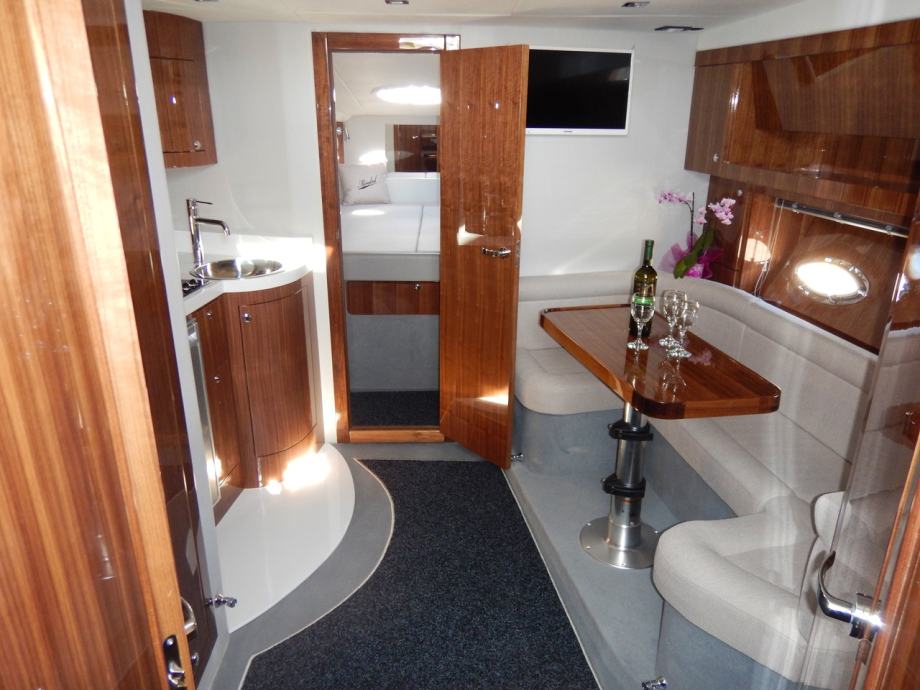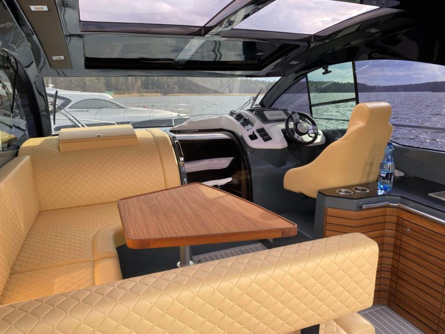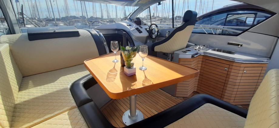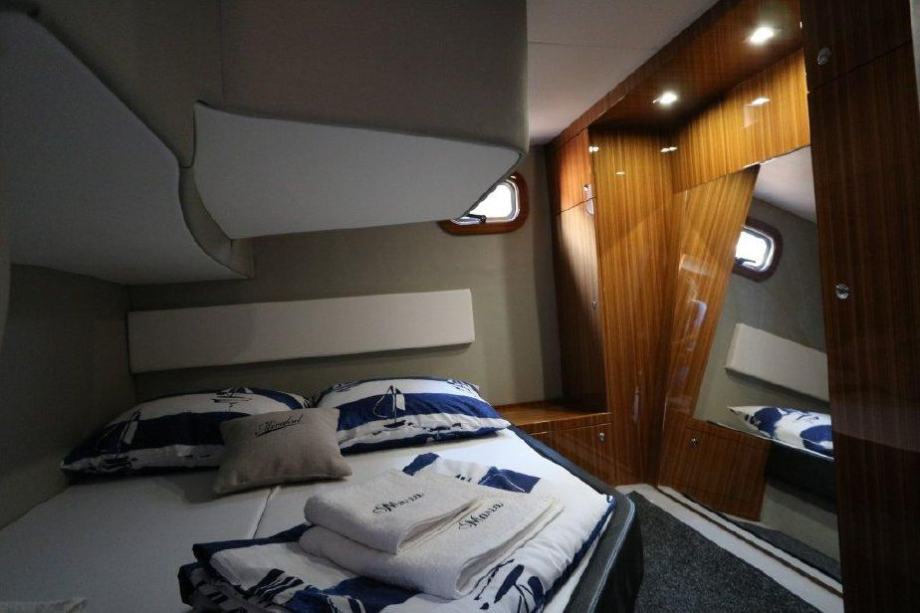 Charter Mirakul 40 Hardtop - najam luksuznih motornih jahti visoke kategorije, potpuni komfor u 3 kabine za spavanje, velika kupaonica, salon, kuhinja, kuhalo, prostrani kokpit sa dodatnim barom ( frižider + sudoper) spremište - garaža za pomočni čamac, veliko sunčalište, LED TV, marine audio system Radio USB, navigacija GPS ploter fischfinder, topla voda, električno sidreno vitlo, hidraulični flapsovi, hardtop - pomični krov.