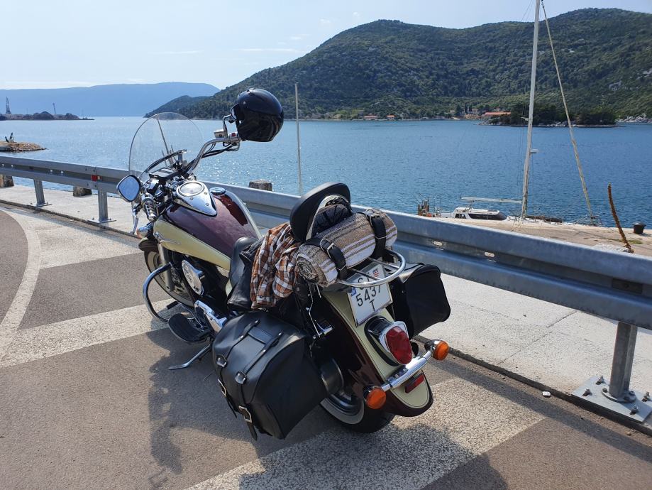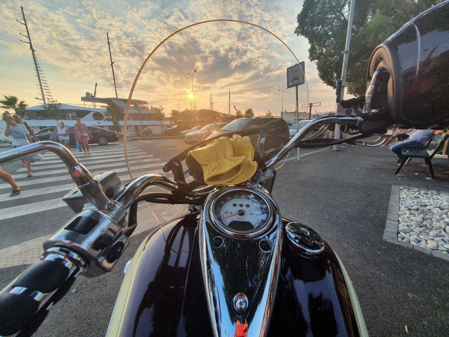 Na motor dodatno stavljen crash bar, sissy bar s rackom.