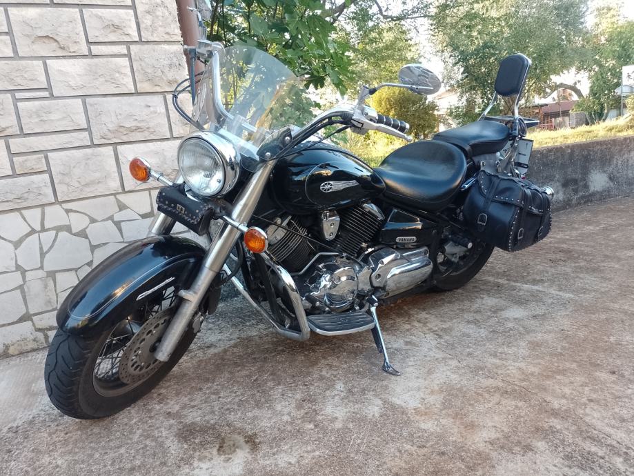 Odlično stanje, garažiran, nova baterija, ulje, filter ulja, svijećice, crash bar, sissy bar, Marving auspusi (super zvuk), original auspusi, kožne bisage, vizir...