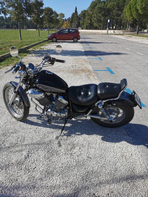 Prodajem Yamaha Virago xv 535, 1995. godište. Motor je prošle godine kupljen u Münchenu od prvog vlasnika. U 10tom mjesecu prošle godine uvezen u Hrvatsku i registriran. Polica osiguranja produžena do 10/2026. Smatram da o modelu ne moram puno pisati pa ću o drugim stvarima. Motor je prerađen, i imao sam problema sa uvozom u HR. Ali sve je odrađeno. Prerade su slijedeće: volan, ogledala, ručice kvačila i kočnice, šire gume, držač tablice, zadnji pokazivači smjera. Sve upisano u prometnu dozvolu. Prošle godine novo ulje, filteri, akumulator. Ove godine u 5 mjesecu nove svijećice. Na 12.000km stavljene nove gume, prednja 135€, zadnja 192€. Prednji kotač centriran u milimetar, 50€. Motor izgleda totalno sexy. Kad bi ga pitali gdje smo sve zajedno bili rekao bi vam sljedeće: prošli nekoliko jezera i planine u Bavarskoj, vozili do Nürnberg, Augsburga, Ingolstadta. Ove godine odradili turu od Münchena do Vrsara. Pa nastavno od Vrsara do Bjelovara. Nakon toga od Bjelovara do Rijeke, pa na Krk, pa u Crikvenicu i onda nastavno Jadranskom magistralom do Zadara. Nazad Ličkom magistralom do Bjelovara. Nakon toga iz Bjelovara nazad u Rovinj, pa na Cres, Lošinj i unutrašnjost Istre. Nikad nikakvih problema. Uvijek stigli sretno na odredište. Motor traži jako malo i daje jako puno. Radi po sistemu PVT, što znači pali, vozi, toči. Pali na zub. Ako je malo hladnije, čok rješava stvar. Uz njega dajem 2 ključa, nešto dokumenata iz Njemačke i servisnu knjižicu. Ostala dokumentacija zadržana na stanici za tehnički pregled. Uz motor dajem i ceradu koja je vodonepropusna. Za sve ostale informacije, pišite, zovite. Broj0922132411✌️