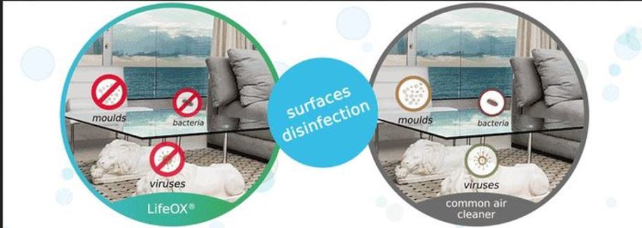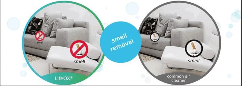 Ozon uzrokuje degradaciju oksidativnih zagađivača (mirisa) i ubijanje / dezinfekciju / degaziranje onečišćujućih tvari, npr. Virusi, bakterije, plijesni i mikroorganizmi u podovima, zidovima, stropovima, automobilskim sjedalima i tepisima. Vrlo korisno za astmatičare, alergičare, vlasnike kućnih ljubimaca!