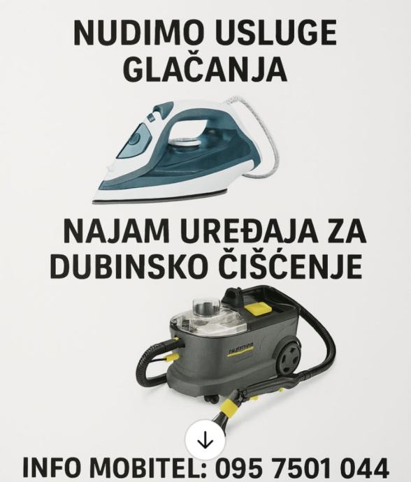 * nudimo usluge glačanja vašeg rublja prikup i dostava na lokaciju besplatni na području Jastrebarskog i okolice te Zagreba, cijena glačanja po kg je 2,50 eura, košulje dugi rukav 2 eura, kratki rukav 1,50