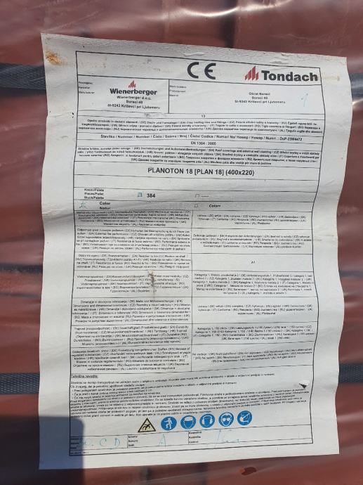 Nova paleta original zapakirana. 384 komada crijep PLANOTON 18 (PLAN 18) 400x220. 1.00€ komad