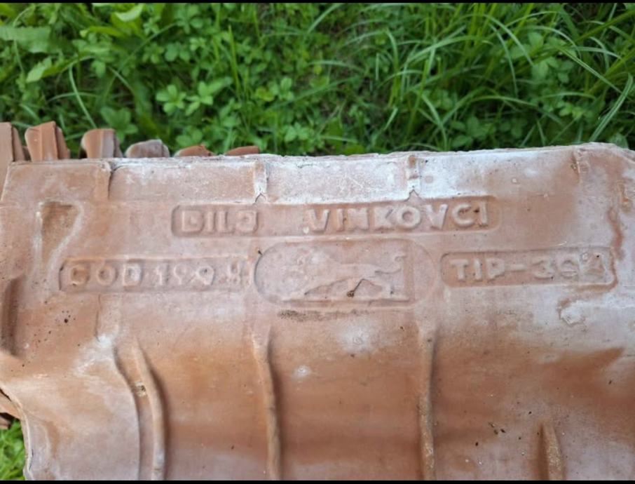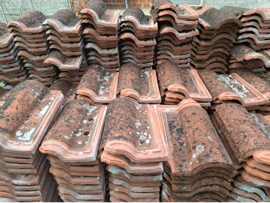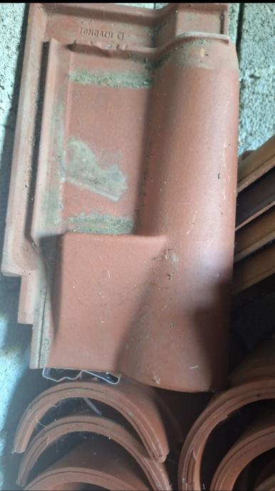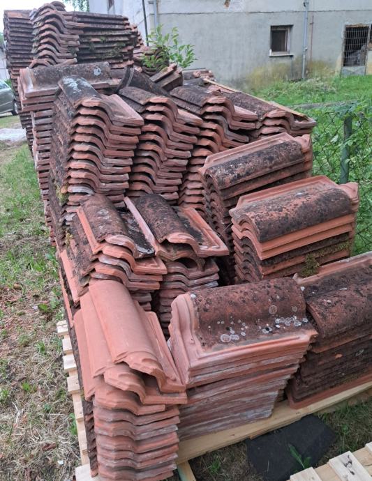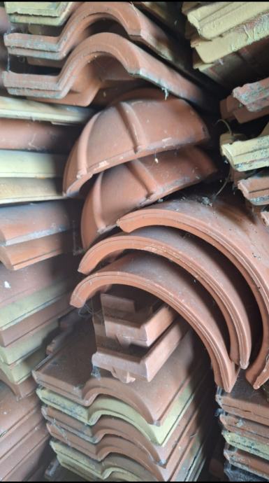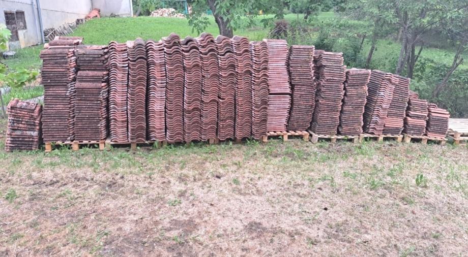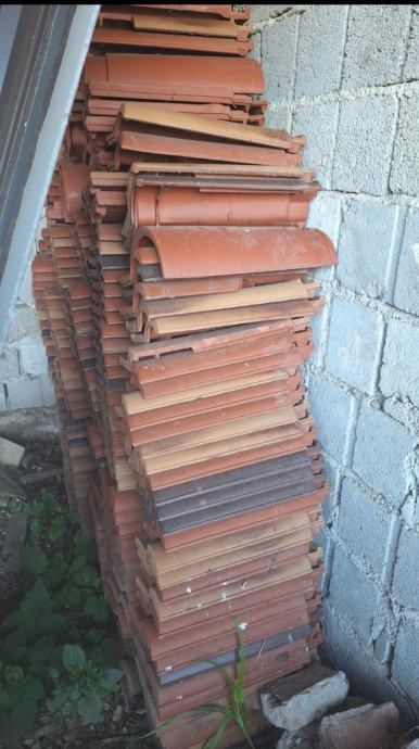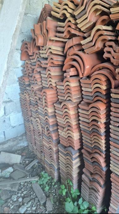 Crijep u vrlo dobrom stanju. Cca 2600 komada + cca 60 komada sljemenjaka i dva obla početna. Cijena 30 centi komad. Sljemenjaci 2,5 eura komad. Sljemenjak početni 4 eura komad.