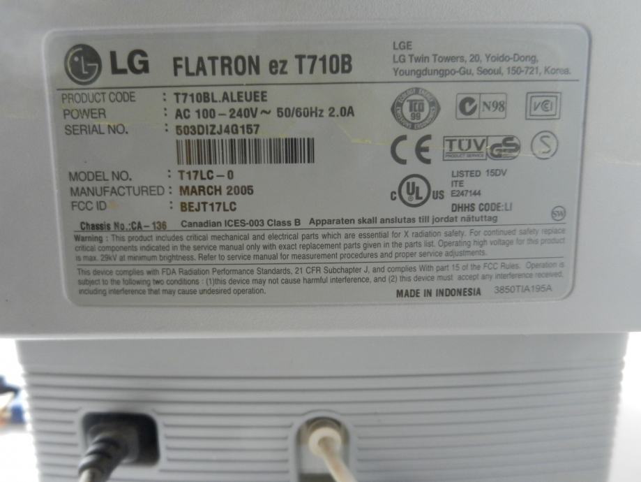 Prodaje se odličan 17" CRT monitor LG FLATRON ez T710B. Testiran je, radi super.
