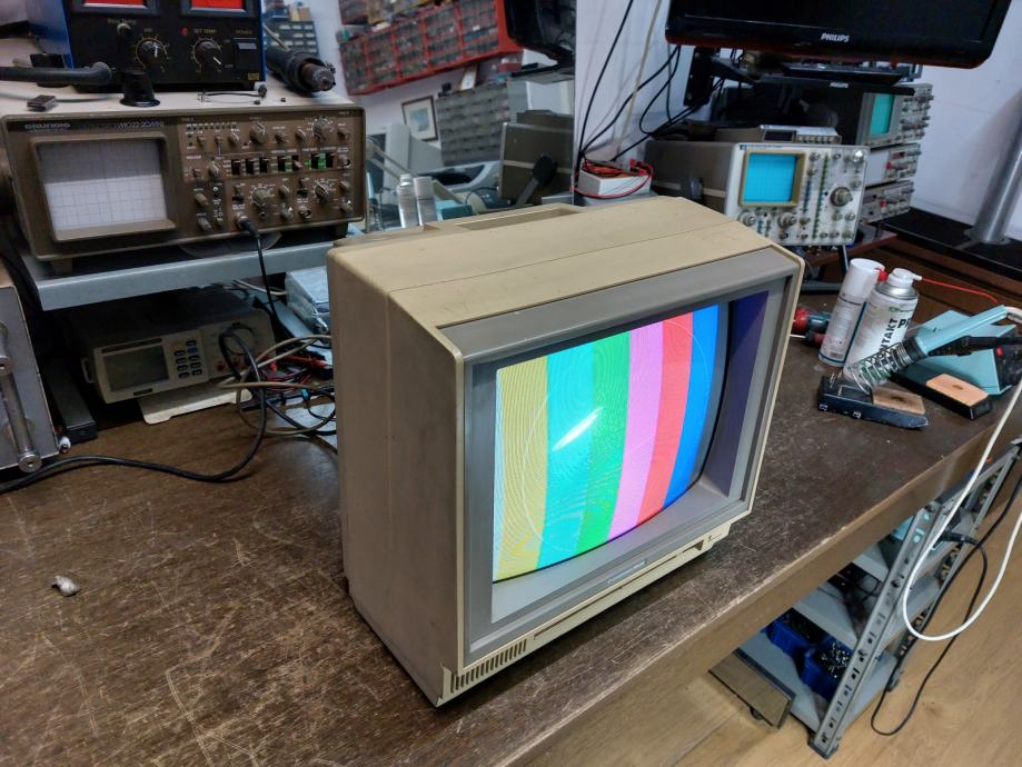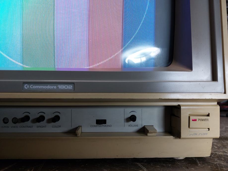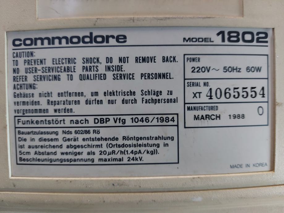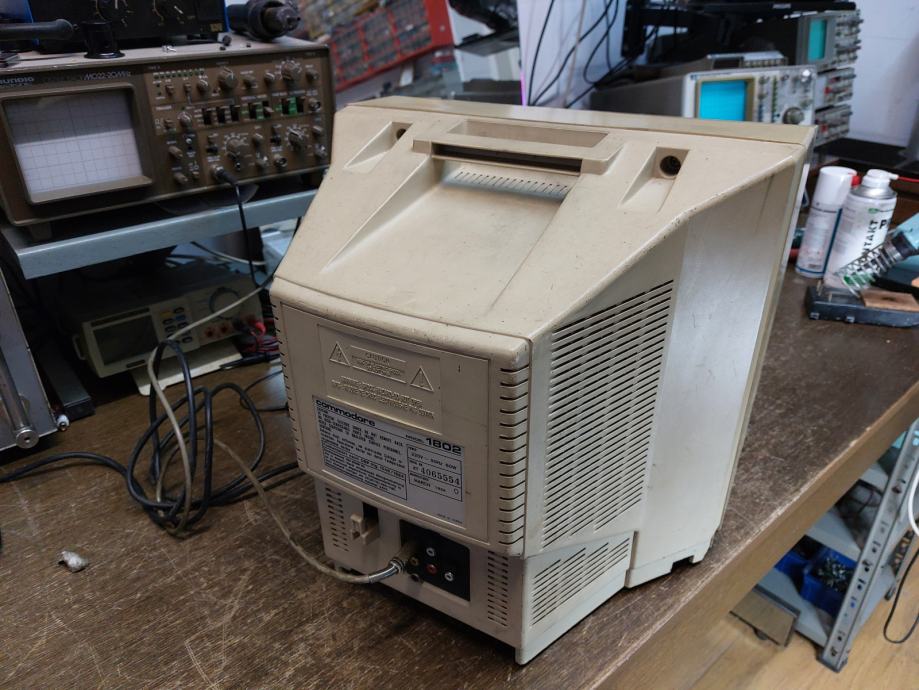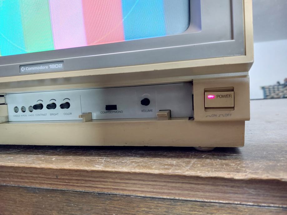 Monitor CRT , original COMMODORE model1802 proizveden 1988. Potpuno ispravan , zamjenjeni samo neki elektrolitski kondenzatori a sve ostalo je originalno . Zvuk i slika na sva tri ulaza su bezprekorni.Poklopac nema.