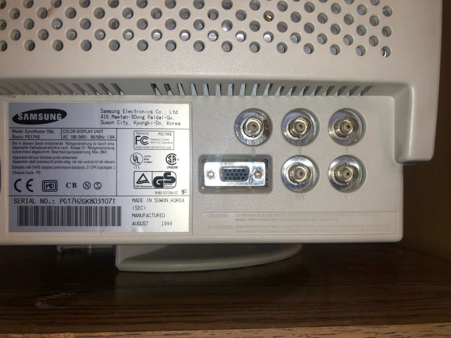 Dijagonala 39-40cm samsung monitor u boji, syncmaster 750p PG17H2GK803107T august 1999. Made in suwon Korea