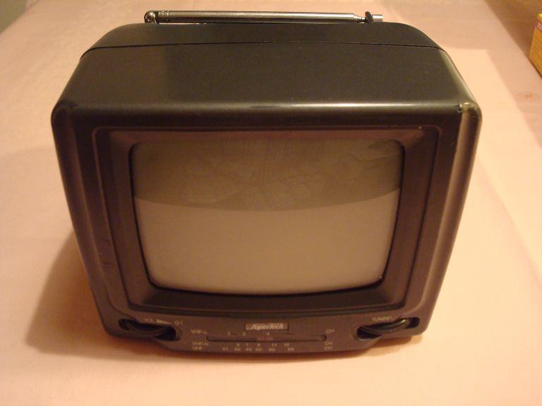 Portabl crno-bijeli TV, dijagonala 13 cm, samo ANALOGNI tjuner. Antena ugrađena. priključak za vanjsku antenu i slušalice.